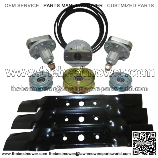 (3) Spindles, (3) Blades, (1) Drive Belt, (2) Idler Pulley, (1) Flat Idler Pulley