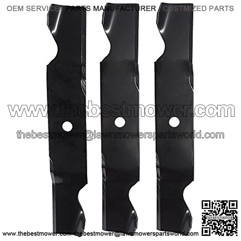 MaxPower’s 561549B includes 3 blades for many 54 in. cut MTD, and Troy-Bilt mowers. These blades replace OEM # 742-3820. Each blades measures 18-1/2 in. L and 3 in. W and features a 3/4 in. center hole diameter. Check your owner’s manual to verify that the OEM number of the blade being replaced matches one of the OEM numbers provided for this item. blades are manufactured to meet or exceed OEM specifications. Proudly made in the USA.