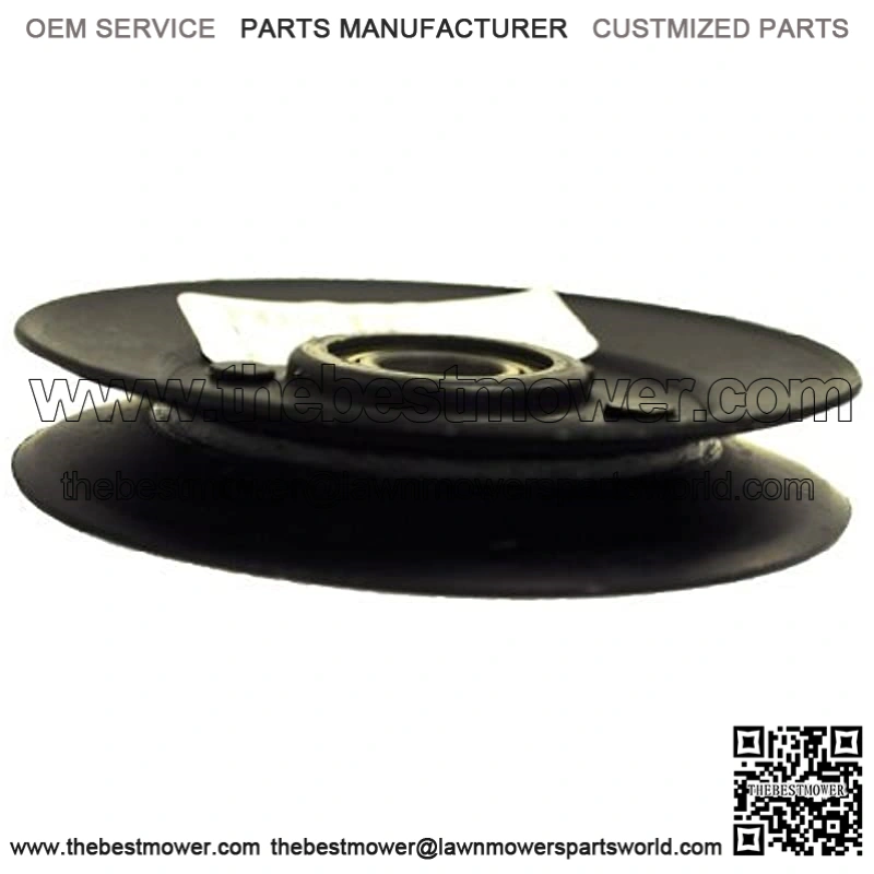 V-Idler Pulley V-idler pulley for many mower decks. Designed to contact the v-side of belt. Measurements: 4.446-inch effective diameter 0.669-inch bore 0.597-inch groove width Steel