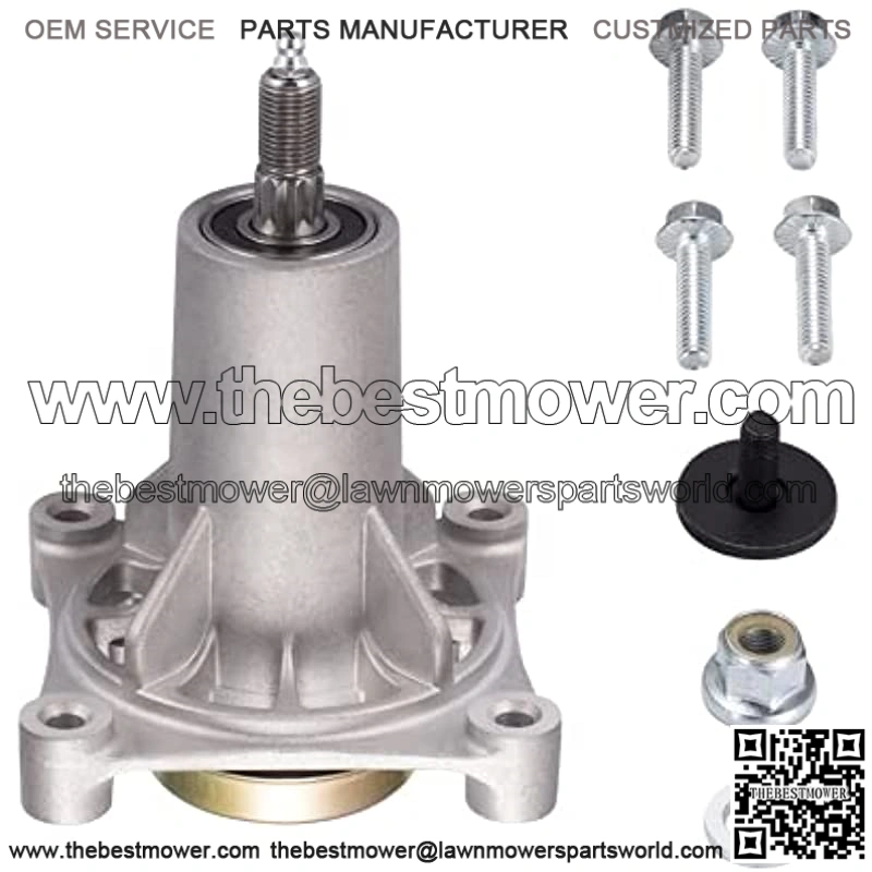 Replacement spindle fit for 187281, 532192870, 532187292, 532187281, 539112057, for Arians 21546299, 21546238, for AYP 192870, 187292, 532192870. Work with many mower tractor including Craftsman/Husqvarna, ariens, Poulan, Poulan Pro, Roper, Sears. Fits 42″, 46″, 48″, 54″ decks. [NOTE: It will NOT fit any Z Turn Mowers, pls confirm your origin part number before your order] The spindle is GREASEABLE, it has grease fittings at the top for maintenance. Easy to install with 4 THREADED mounting bolts (the mounting holes are also already threaded), pulley nut, blade bolt & washer. Make your installation much easier.